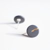 Black porcelain round unisex stud earrings with shiny golden line details. Perfect for everyday wear or special occasion.