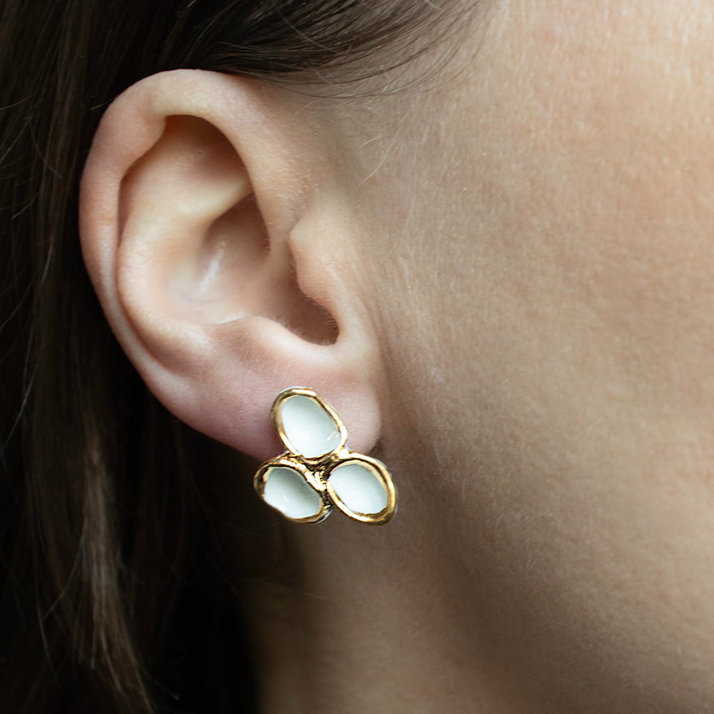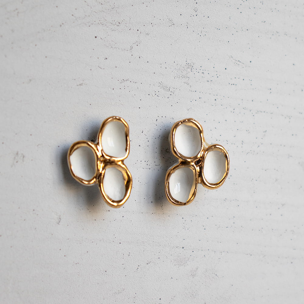 ◆ Material: white porcelain, gold luster, 925 Sterling silver posts