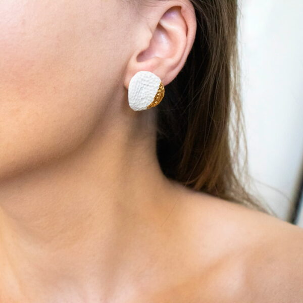 ◆ Material: White porcelain, gold luster, 925 Sterling silver posts